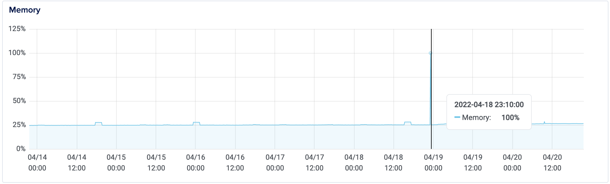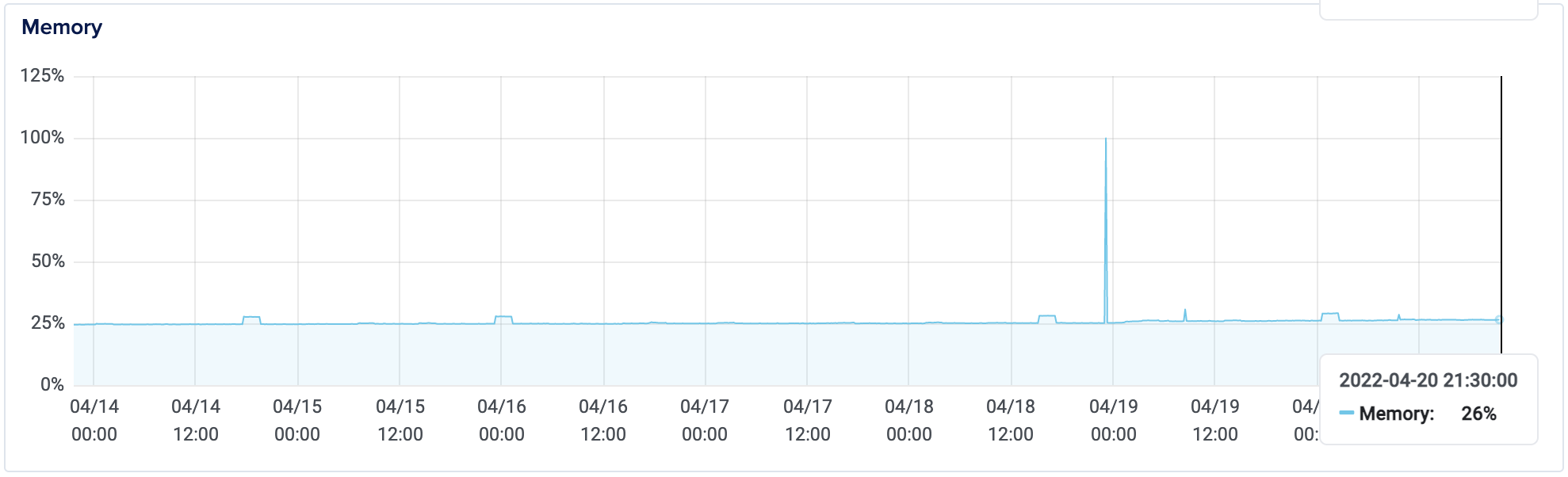 You see that little spike there, on the 04/19, around 00:00? Before you ask me about my nightly coding habits, that’s 100% memory utilisation.